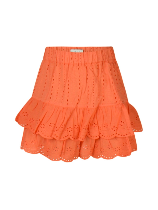 Deze schattige meisjesrok is perfect voor een zomerse outfit! De mooie broderie details en de speelse stroken geven de rok een vrolijke uitstraling.