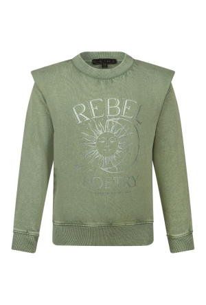 Bloom! Deze sweater is een kort cropped model en heeft een open borduursel onder aan de mouw. Deze is voor de blote buiken dragers een trendy item op zonnige dagen.