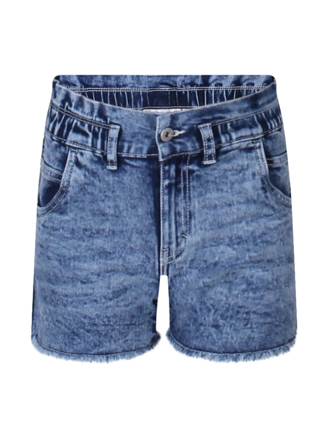 Deze korte denim spijkerbroek geeft jou een beachy look en een zomers gevoel! Joepie! Met een elastische tailleband en 4 pockets heeft deze short een rafelafwerking voor een speels effect. Leuk af te stylen met T-shirts en een zomerse slipper! You go girl!
