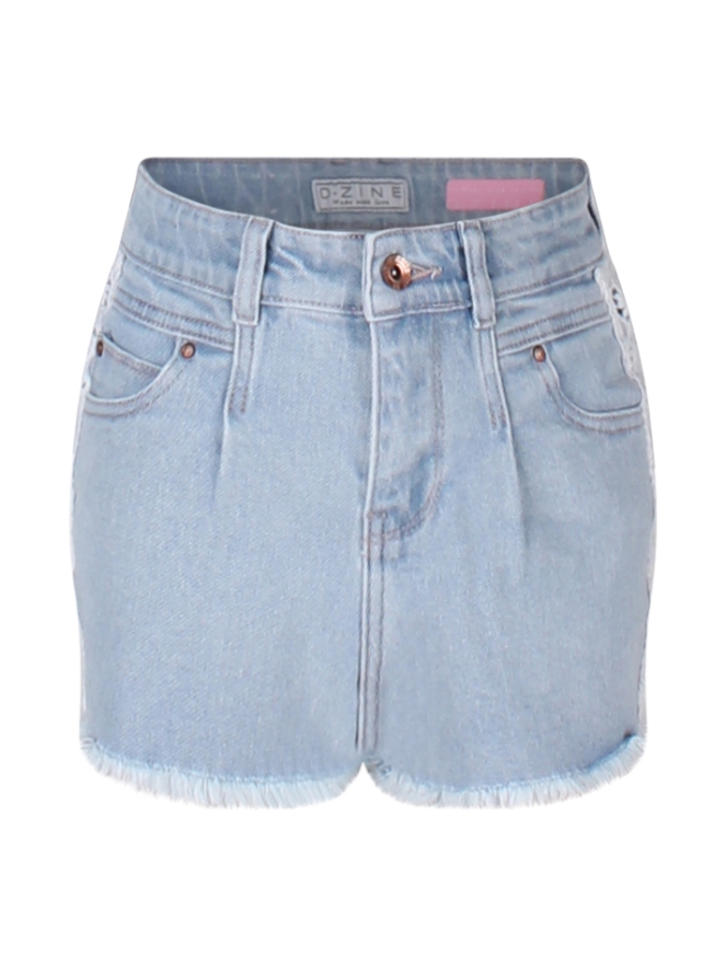 Deze stoere high waist short voor meisjes is gemaakt van een comfortabele denim. De lace tape en de rafeltjes langs de rand geven de short een speelse, trendy uitstraling. Perfect voor een zomerse look met een edgy twist!