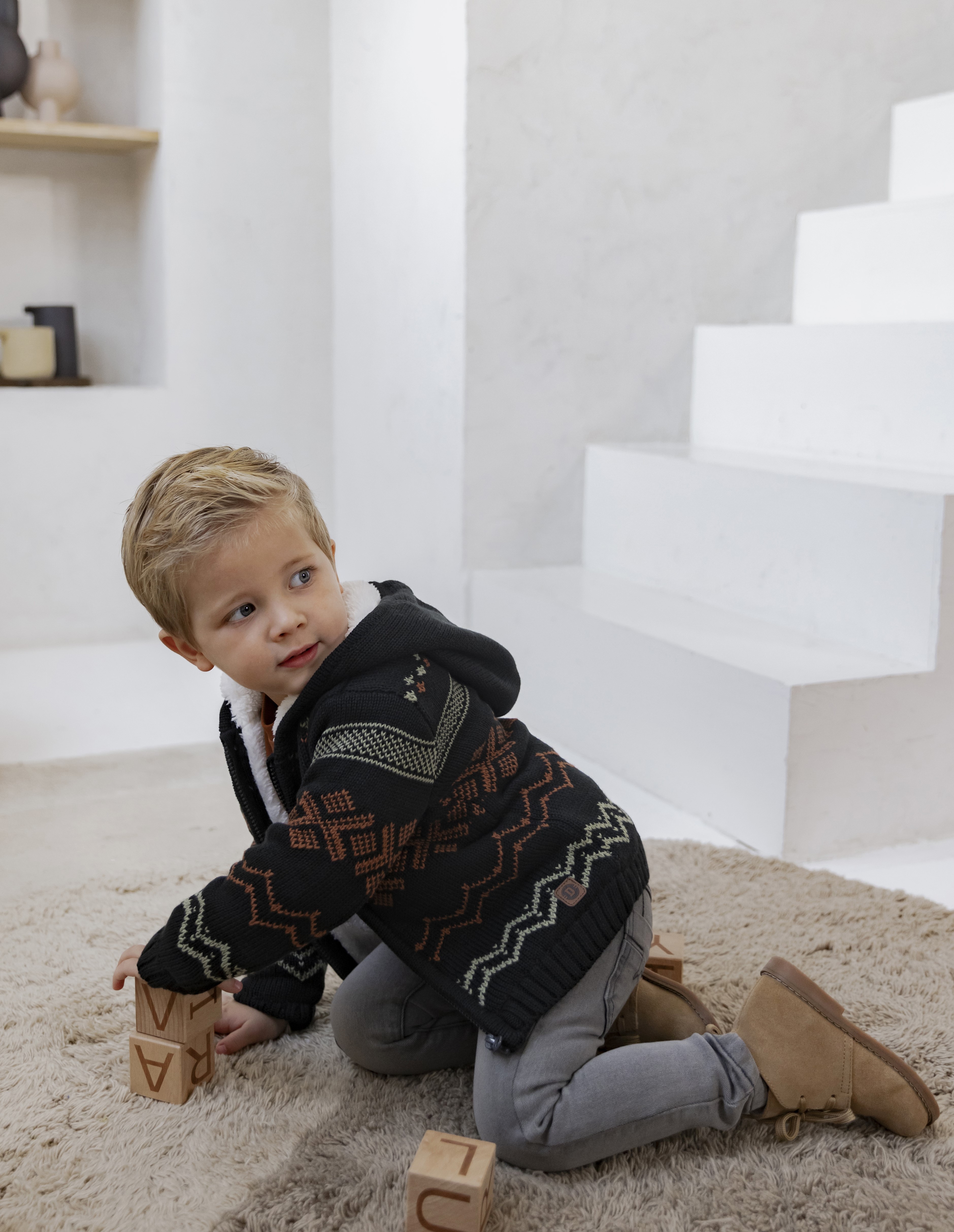 Warm baby jongens vest gevoerd met teddy. Dit vest heeft een capuchon en een stoere Noorse uitstraling.