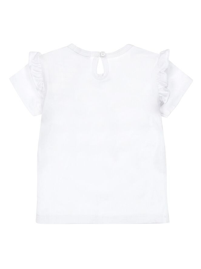T-shirt met korte mouwen en ruche op de schouders. Het t-shirt is aan de bovenkant gemokt.