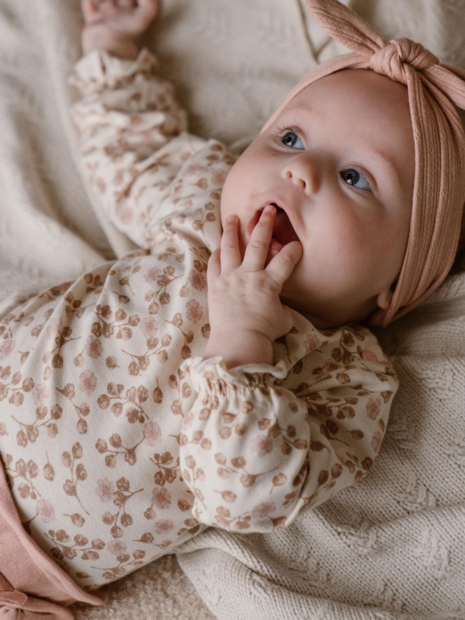 Fijn T-shirtje voor newborn baby meisjes. Dit shirtje heeft een bloemetjes print in neutrale kleuren en laat jouw meisje stralen. Met drukknoopjes op de schouder. Dirkje maakt haar gehele newborn baby lijn van Organic Cotton zo ook dit super leuke exemplaar!