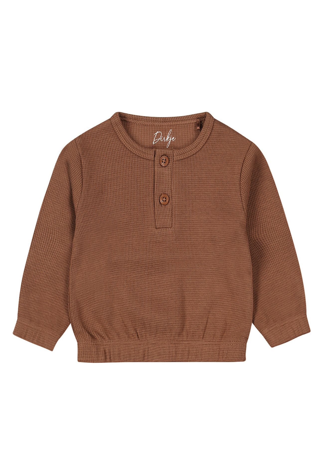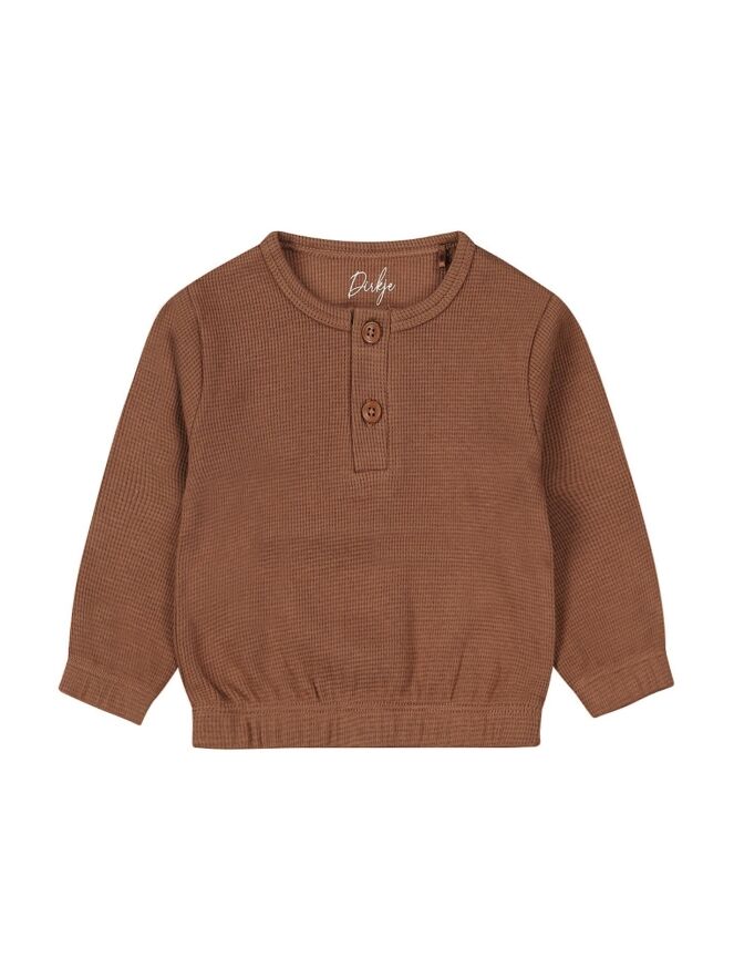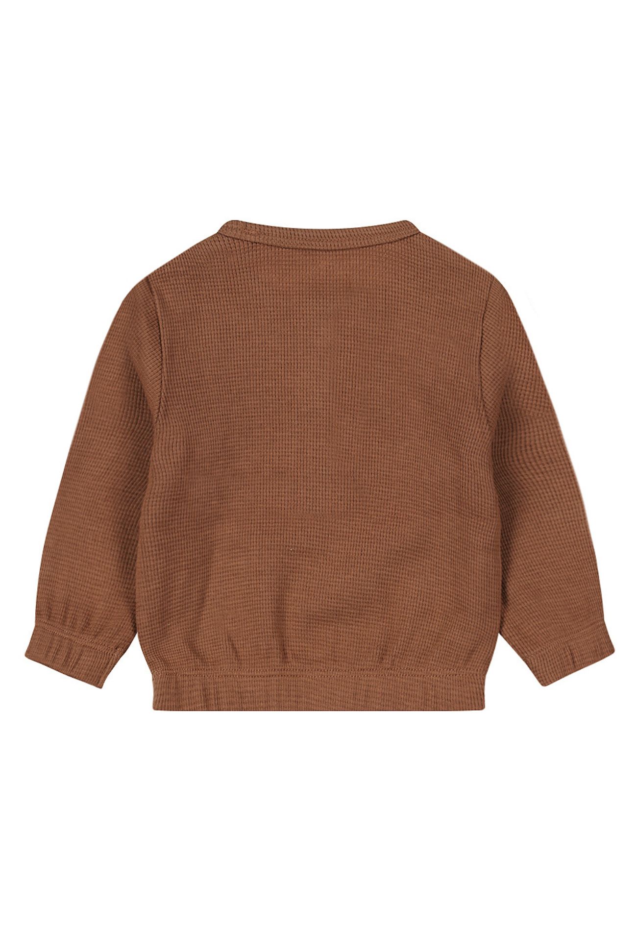 Zoete sweater voor newborns in een mooie bruine kleur. Dit shirt met serafino knoopsluiting aan de voorkant is vervaardigd uit organic cotton.