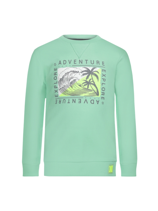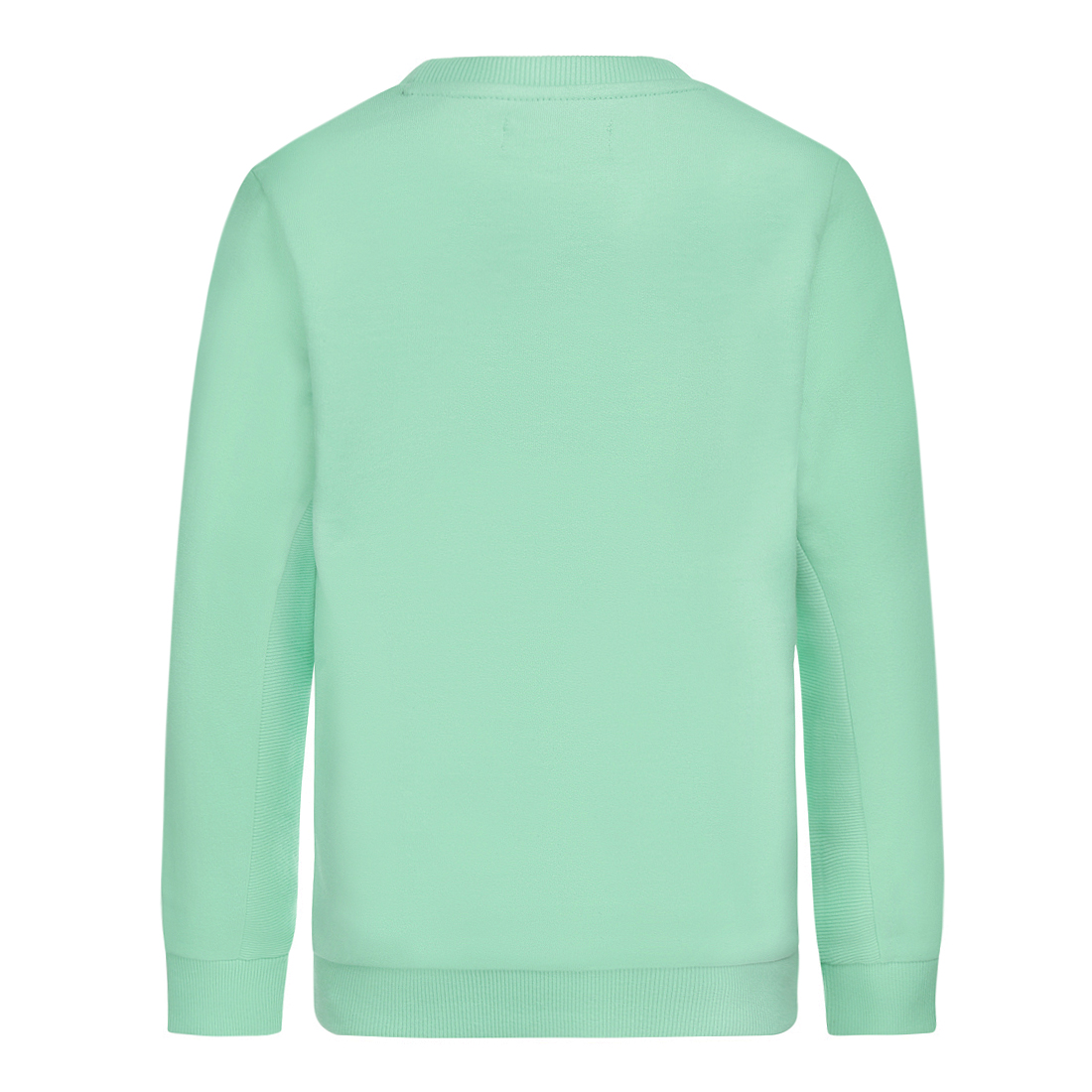 Sweater met lange mouwen en een ronde hals. De sweater heeft over de lengte van de mouw een boorddetail en voorop een tekst/print opdruk.