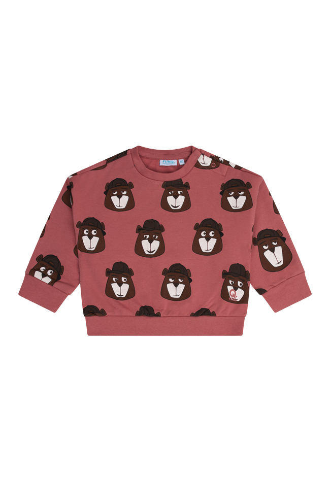 Deze baby jongens sweater heeft een speelse all-over berenprint en een trendy boxy fit. Gemaakt van zachte stof voor extra comfort ? perfect om in te spelen, kruipen en ontdekken.