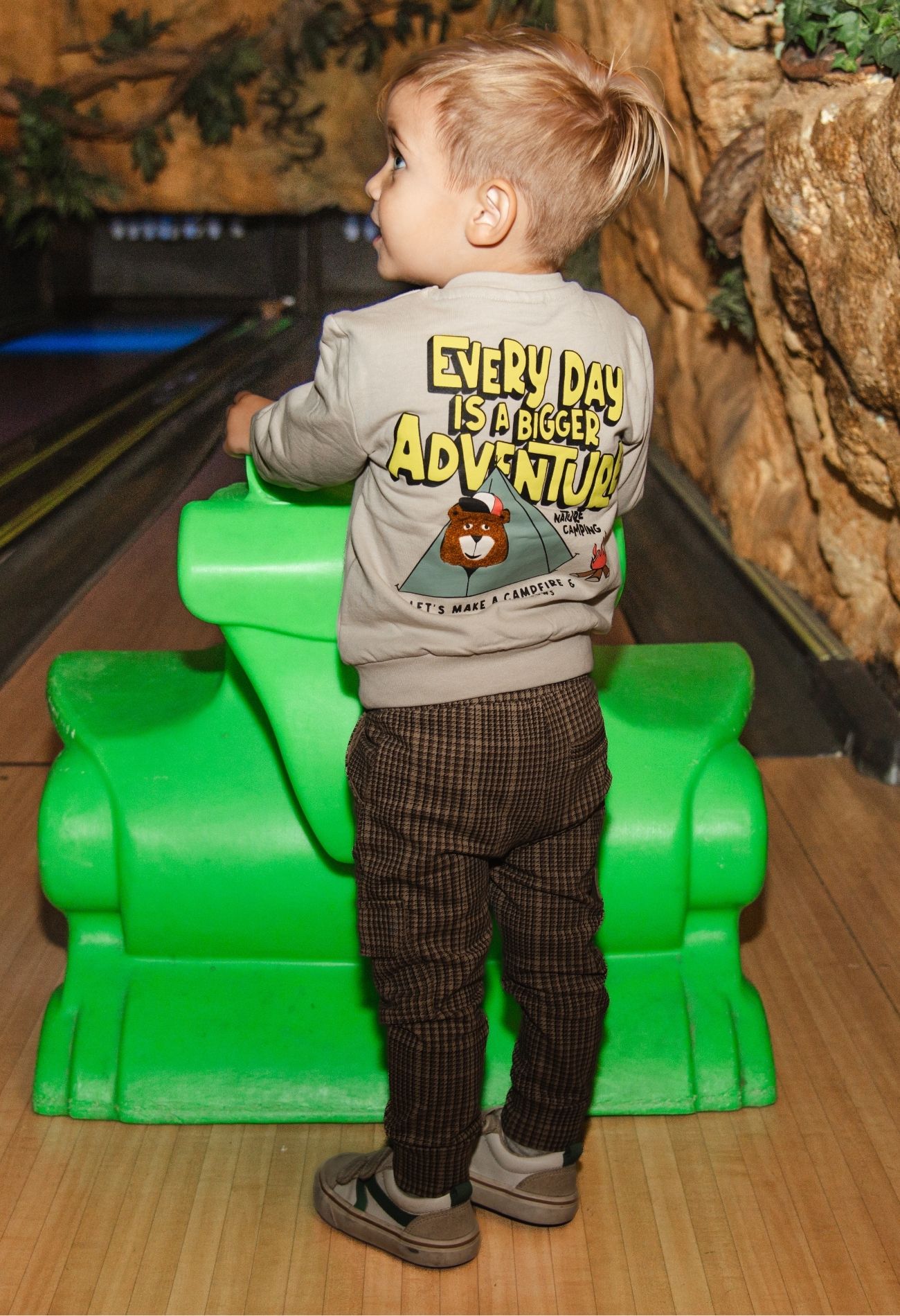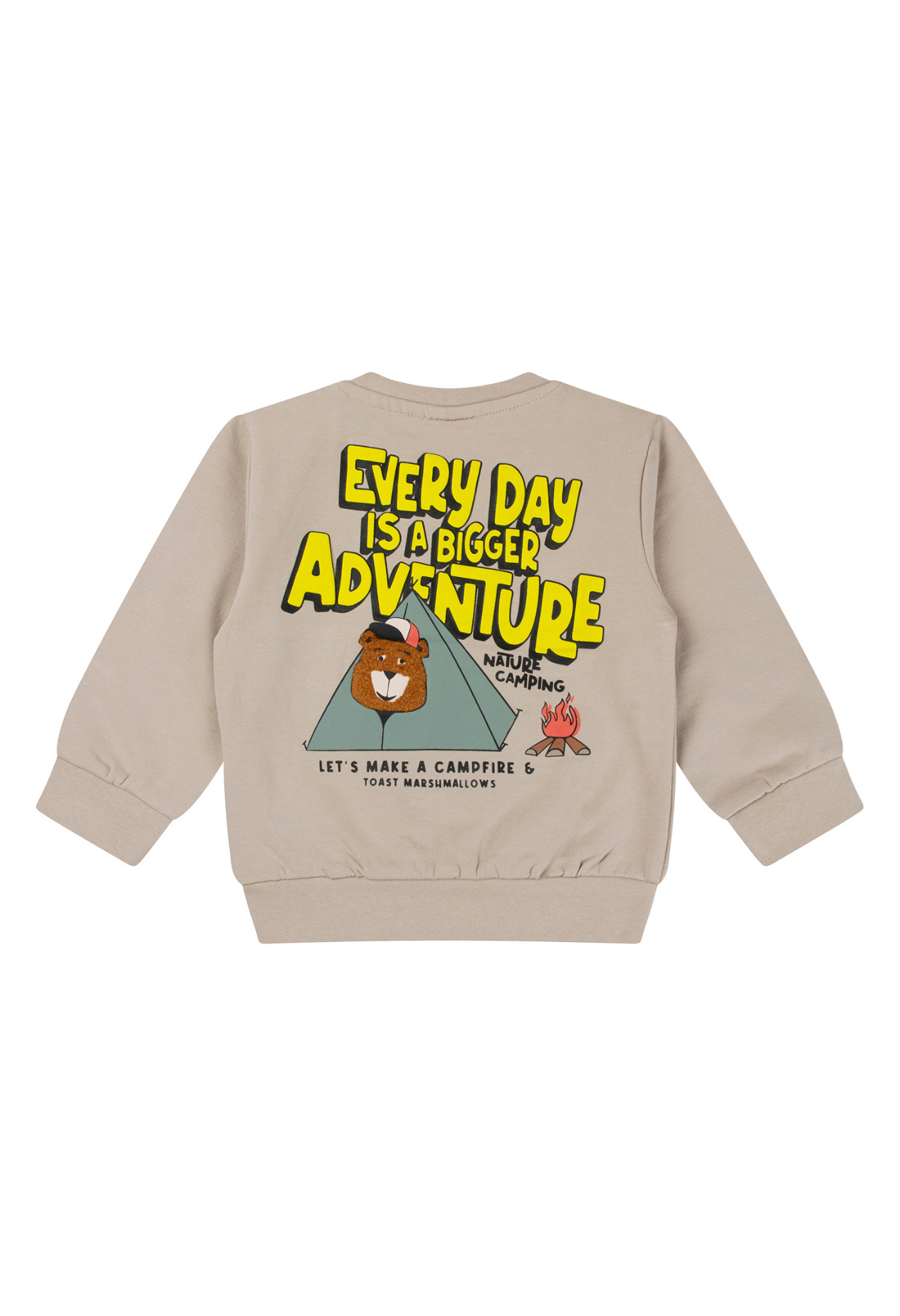 Voor de kleine avonturiers hebben we een hele leuke sweater! Every day is a bigger adventure! Toast marshmallows!! Jumjum!