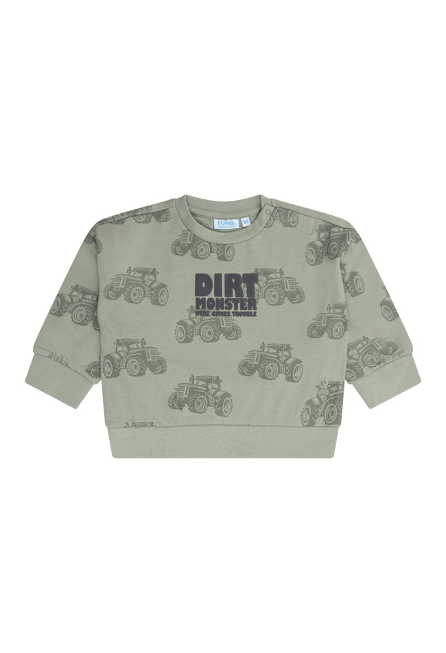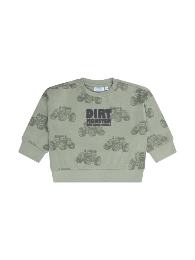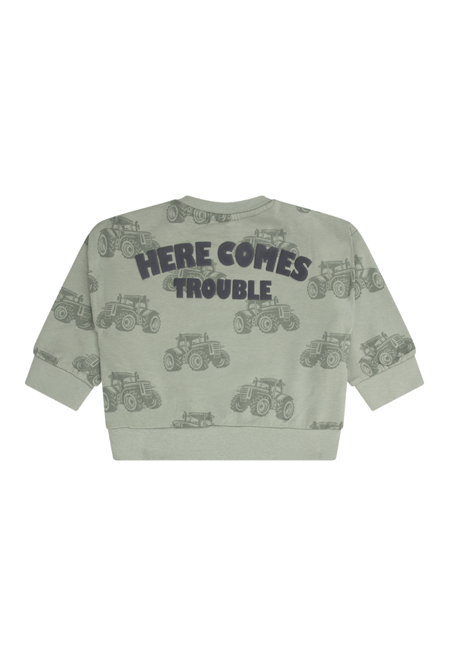 Deze baby jongens sweater is perfect voor kleine avonturiers in de dop! De all-over trekkerprint geeft een speelse en stoere look, terwijl de zachte binnenkant zorgt voor optimaal draagcomfort. De sweater is voorzien van een leuke tekstprint op zowel de voorkant als de rug, wat zorgt voor een extra vrolijke uitstraling.