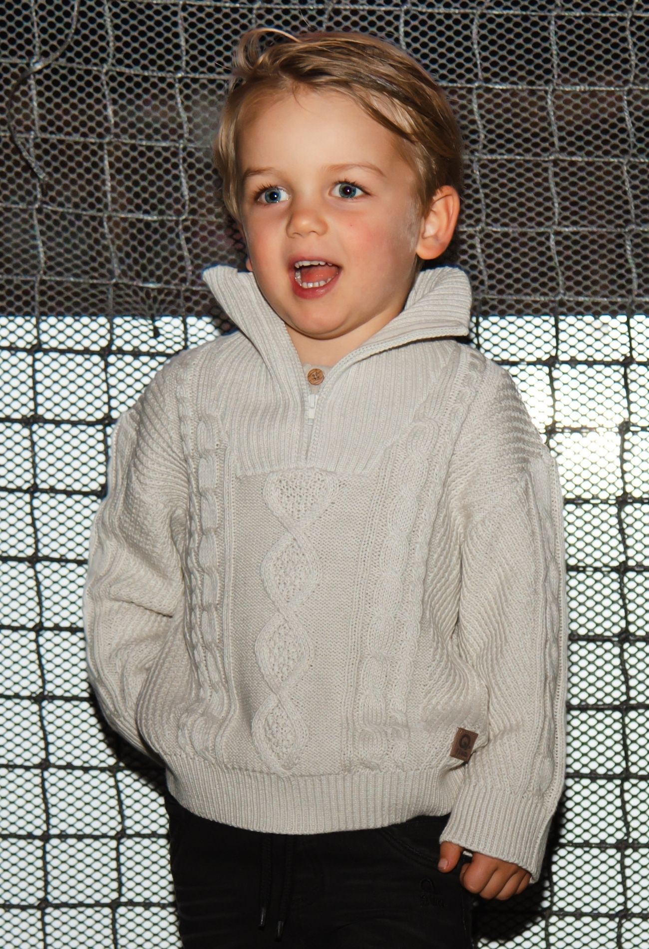 Deze schattige schippers trui voor baby jongens is gemaakt van een zachte mix van katoen en acryl, ideaal voor de gevoelige babyhuid. De klassieke kabelbrei geeft de trui een tijdloze uitstraling, terwijl de handige ritssluiting zorgt voor makkelijk aan- en uitkleden.