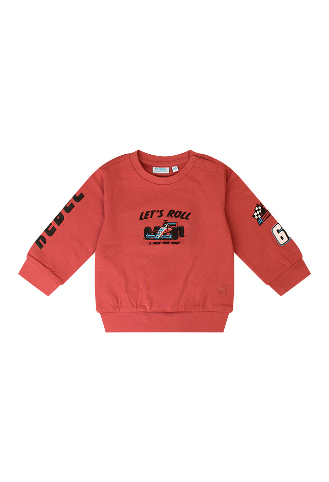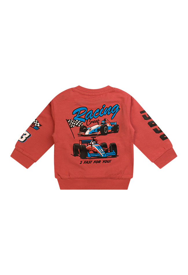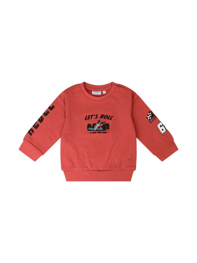 Vroeem vroeem! Deze stoere sweater is echt iets voor kleine autofans. De leuke auto print op de voorkant steelt de show, en ook de mouwen en achterkant zijn voorzien van een coole opdruk. Gemaakt van een zachte sweatstof, dus extra comfortabel voor jouw kleintje. Combineer ?m met een stoere jeans en de outfit is helemaal compleet!