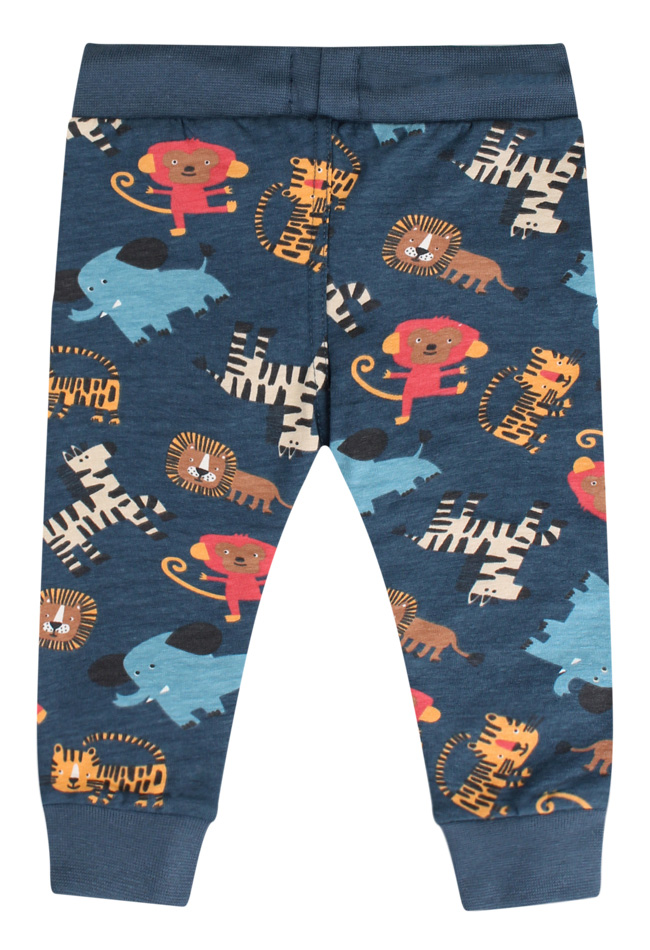 Baby jongens broek met elastische tailleband en twee steekzakken met en dierenprint.