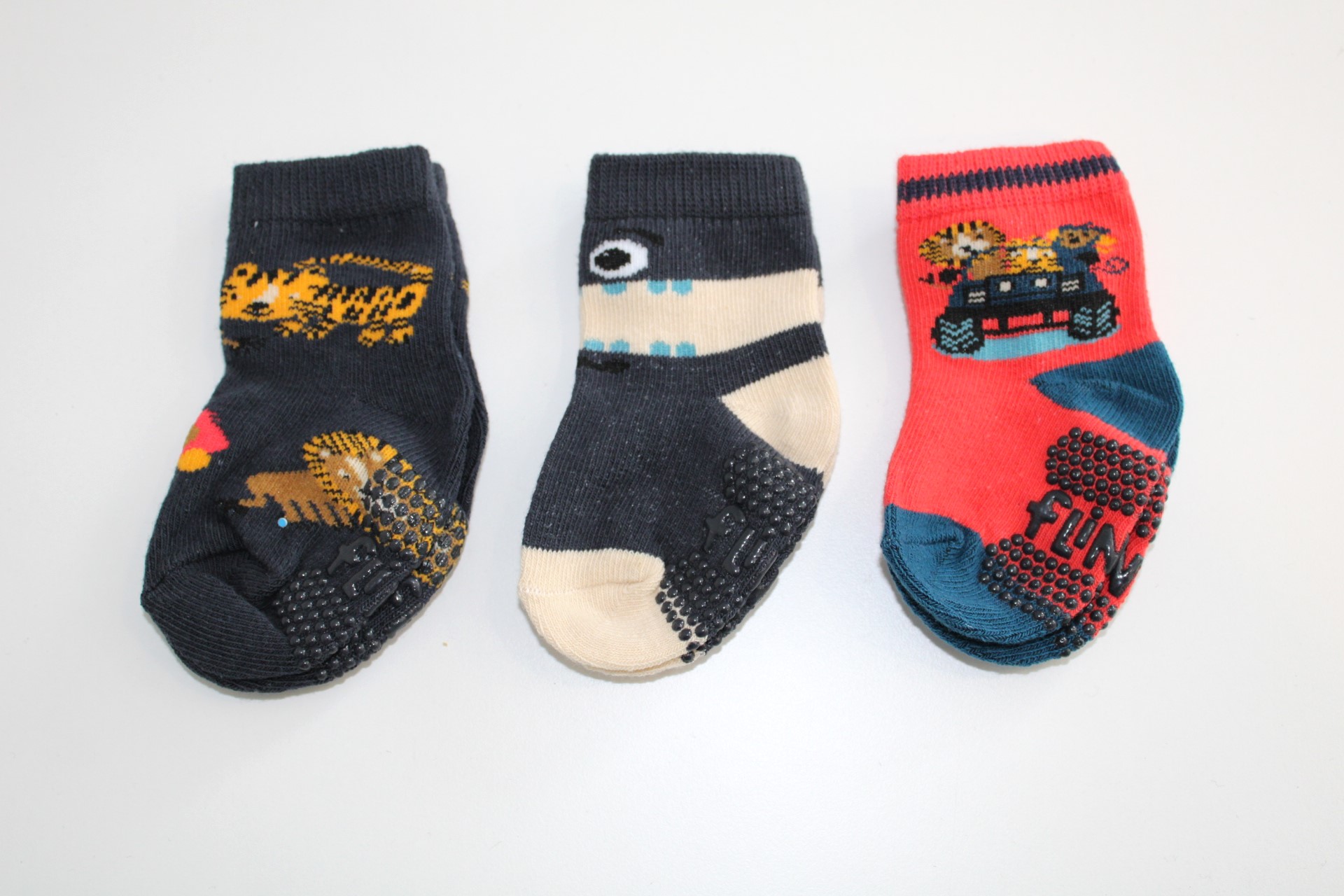 Sokken voor baby jongens verpakt per 3. Met anti slip onder de voet. Met dieren, monsters en jeeps.