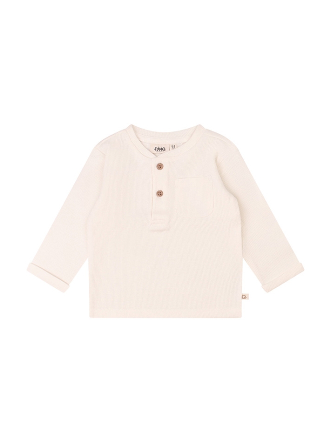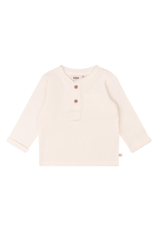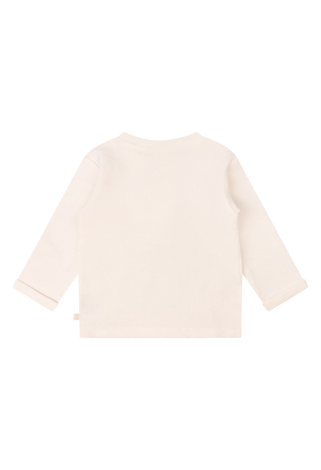 Dit fijne shirt in een hele fijne wafelkatoen stof heeft een naturel uitstraling met houtlook knoopjes. Perfect te combineren met de broekjes van dezelfde stof met art.nr. Z10130