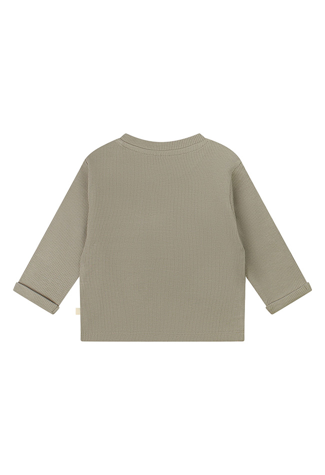 Dit fijne shirt in een hele fijne wafelkatoen stof heeft een naturel uitstraling met houtlook knoopjes. Perfect te combineren met de broekjes van dezelfde stof met art.nr. Z10130