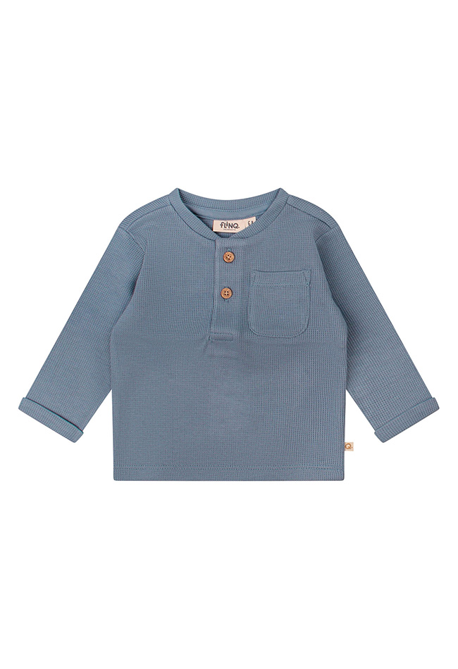 Dit fijne shirt in een hele fijne wafelkatoen stof heeft een naturel uitstraling met houtlook knoopjes. Perfect te combineren met de broekjes van dezelfde stof met art.nr. Z10130