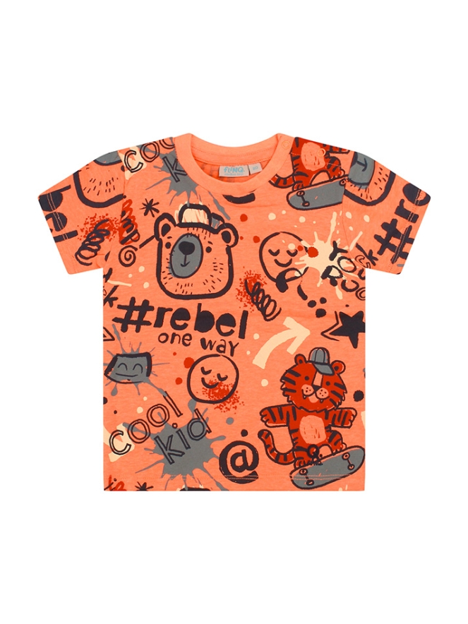 Voor de little rebels en cool kids hebben we dit leuke T-shirtje met vrolijke alloverprint!