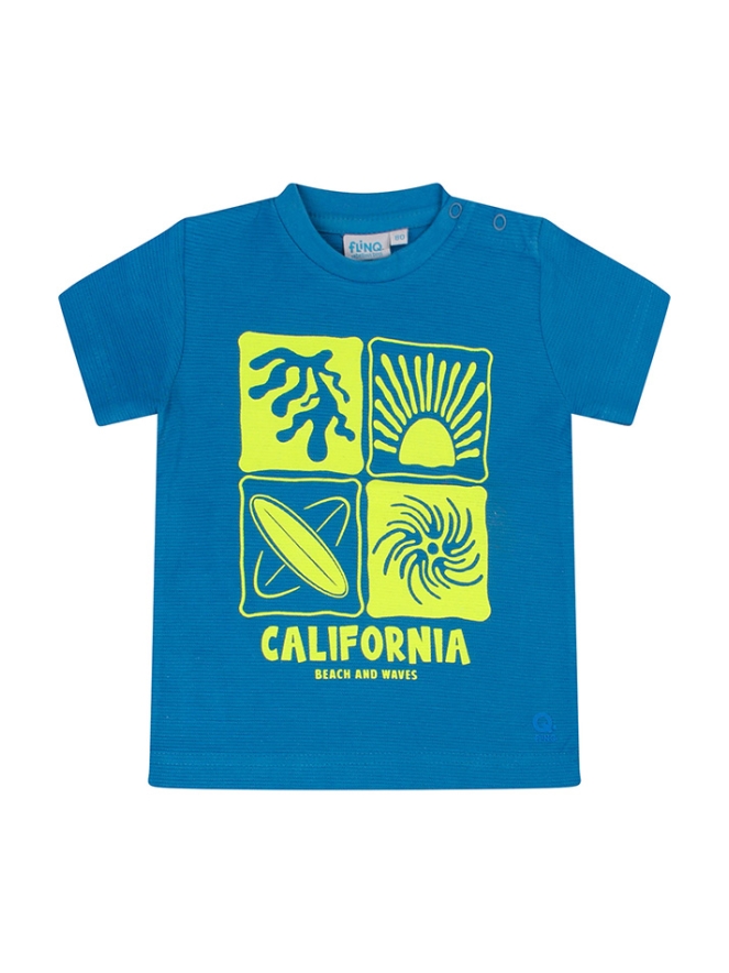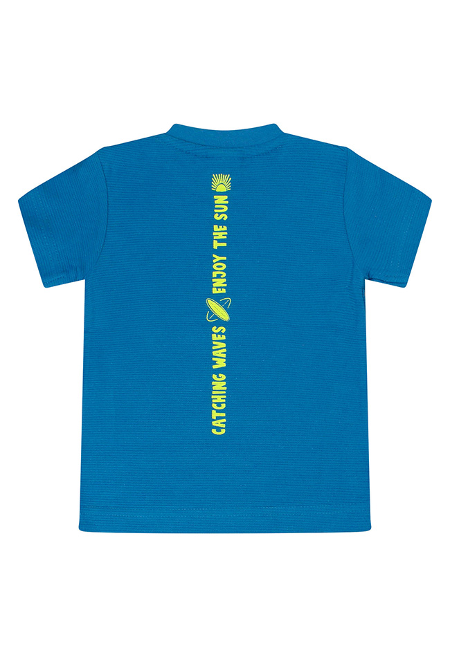 Dit zomerse shirt met beach thema is van een wat dikkere stof met een lichte ribbel. Zowel voor als achterop staat een mooie print in contrast kleur. Voor beach boys die uitkijken naar mooie zomerse dagen.....