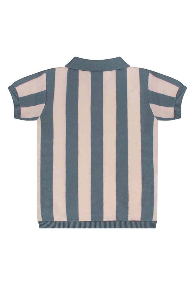 Mooie fijn gebreide polo met verticaal streeppatroon. Voor een nonchalante look draag je deze polo op een mooie jeans korte broek.