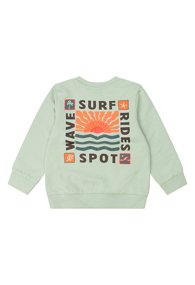 Alle surf spot seekers opgelet! Voor de echte little beach boys hebben we deze ontzettend leuke sweater. Vol met mooie prints over surf clubs, catching waves en making memories.