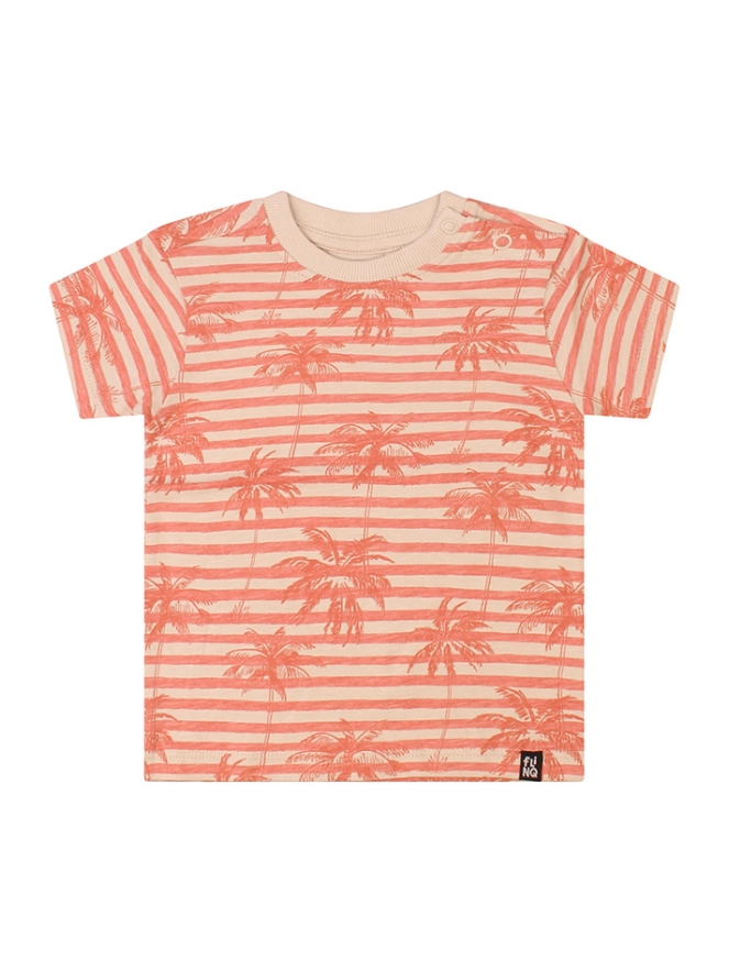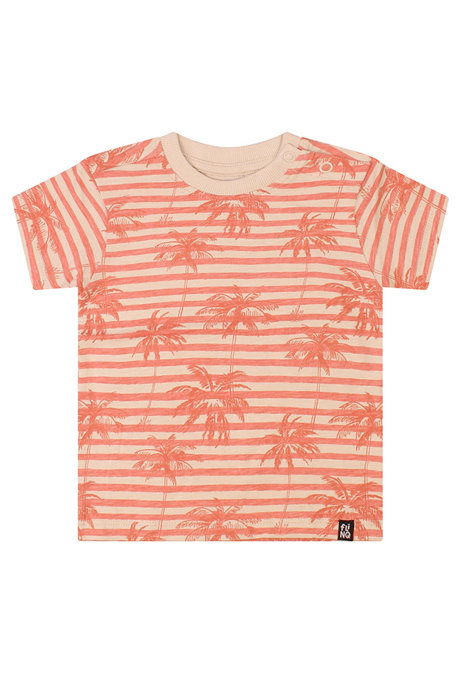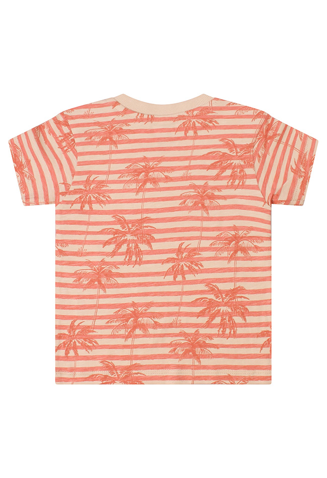 Breng een zomers tintje in de garderobe van je kleintje met dit schattige baby T-shirt voor jongens. Het T-shirt heeft een vrolijk streeppatroon gecombineerd met tropische palmbomen, voor een speelse en zonnige uitstraling.