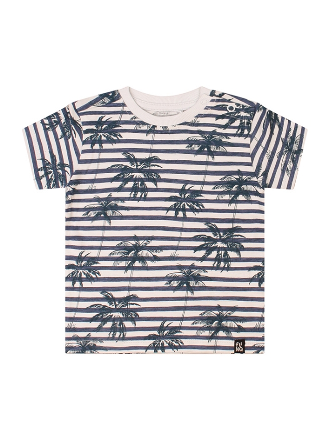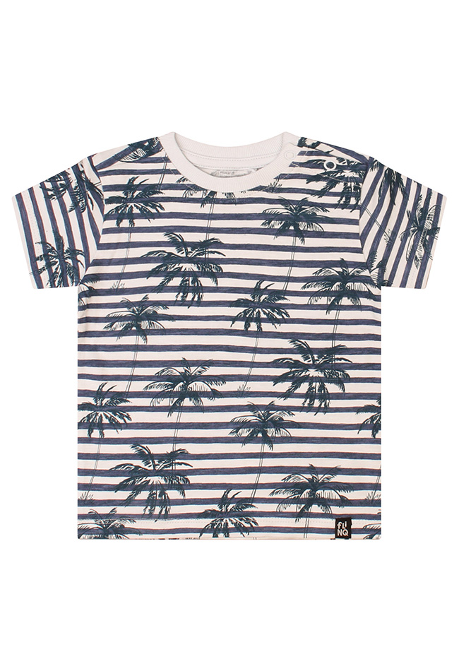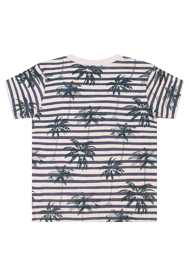 Breng een zomers tintje in de garderobe van je kleintje met dit schattige baby T-shirt voor jongens. Het T-shirt heeft een vrolijk streeppatroon gecombineerd met tropische palmbomen, voor een speelse en zonnige uitstraling.