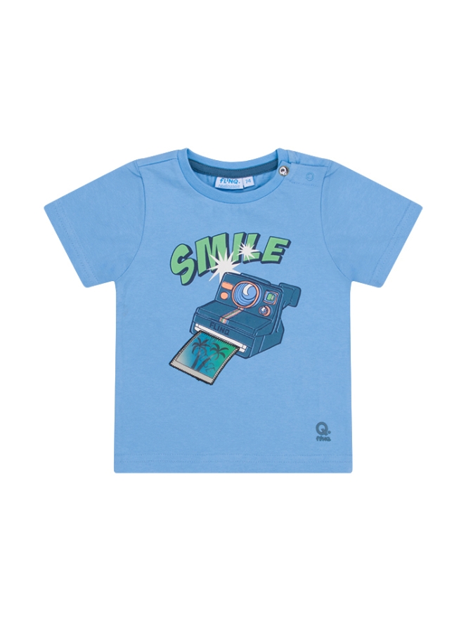 T-shirt van FlinQ. Het t-shirt heeft een fototoestel print met een holografische foto. Materiaal: 65% polyester, 30% katoen, 5% elasthan. Wassen op 30 graden, niet bleken, niet in de droger, niet strijken.