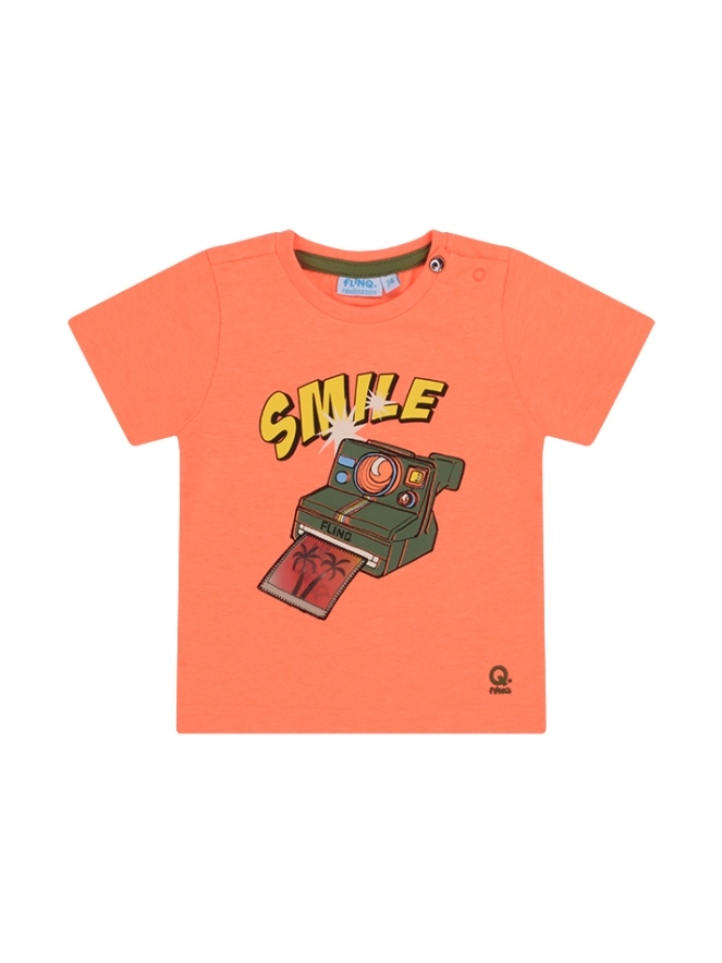 T-shirt van FlinQ. Het t-shirt heeft een fototoestel print met een holografische foto. Materiaal: 65% polyester, 30% katoen, 5% elasthan. Wassen op 30 graden, niet bleken, niet in de droger, niet strijken.