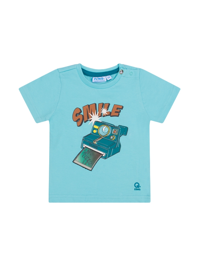 T-shirt van FlinQ. Het t-shirt heeft een fototoestel print met een holografische foto. Materiaal: 65% polyester, 30% katoen, 5% elasthan. Wassen op 30 graden, niet bleken, niet in de droger, niet strijken.
