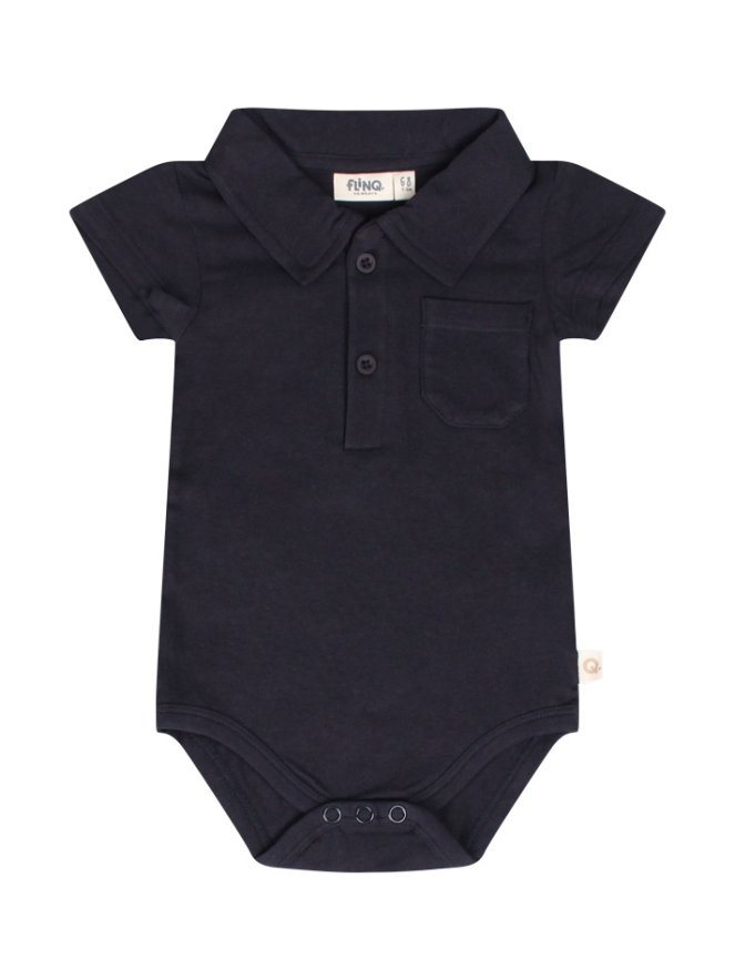 Deze polo romper met borstzakje is effen van kleur.
