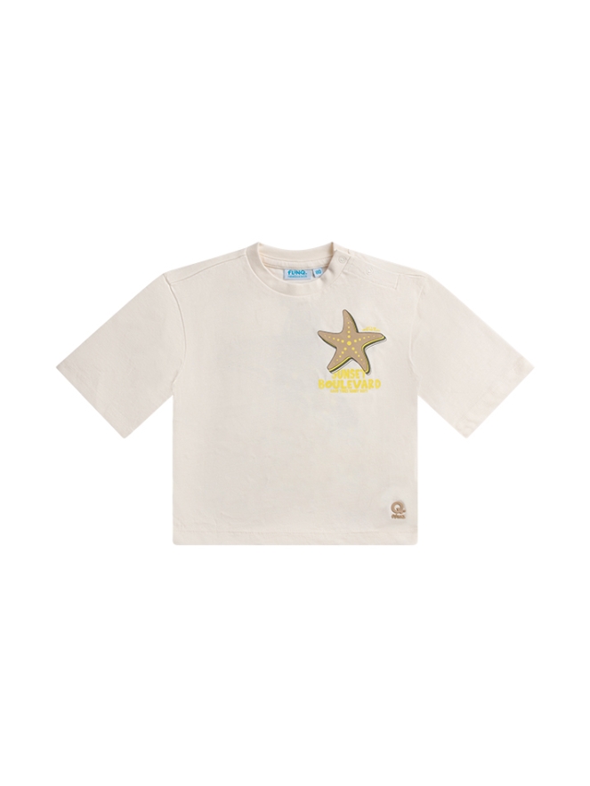Good times sunny days! Dit T-shirtje heeft de pasvorm boxy fit. Dat betekend dat het wat wijder valt. Met super leuke print voor en achterop is jouw kleine strandpiraat met dit T-shirt ready for summer!