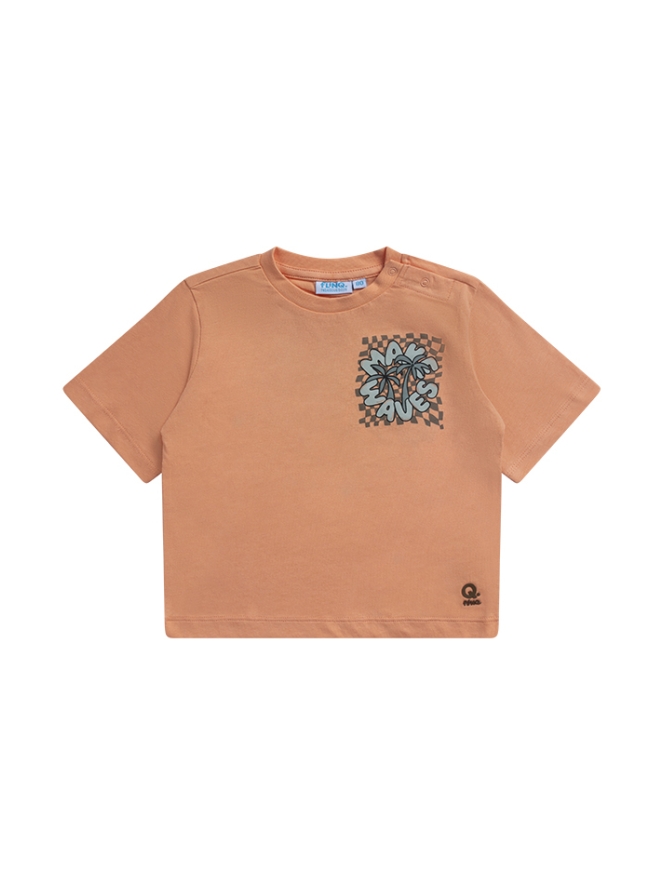 Make waves en geniet van de golven! Dit T-shirtje voor jouw jonge beachboy heeft een boxy fit en valt dus wat wijder. Met leuke print op de rug en een kleine voorop. Combineer jij hem met zijn hippe zwembroek of combineer je hem liever met een jeans kortebroek?