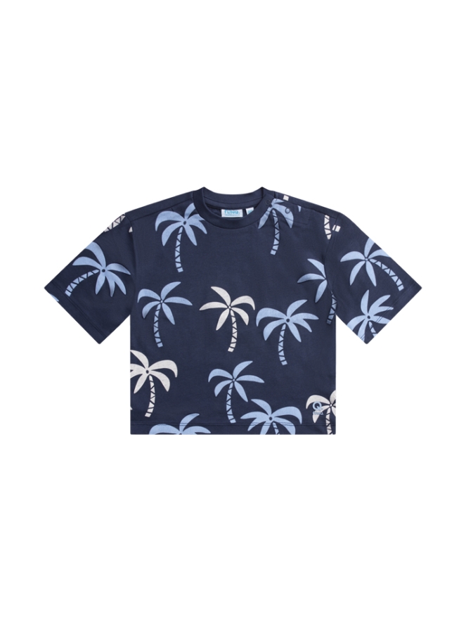 Als je van de tropen houd dan is dit het perfecte shirtje. Dit T-shirt is een boxy fit en valt ruimer dan een normaal T-shirt. De print is allover en heeft daarin een eenheid in kleuren die gemakkelijk te combineren zijn met jeans en korte broeken.