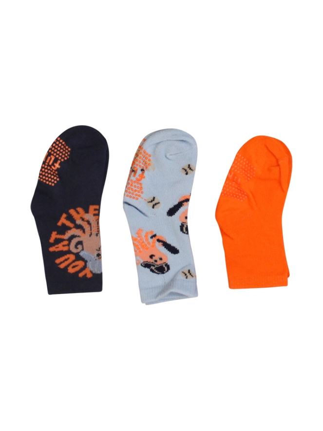 3-Pack sokken voor baby jongens met antislip onder het voetbed. 1 Paar effen gekleurd, 2 paar met print stoere inktvis.