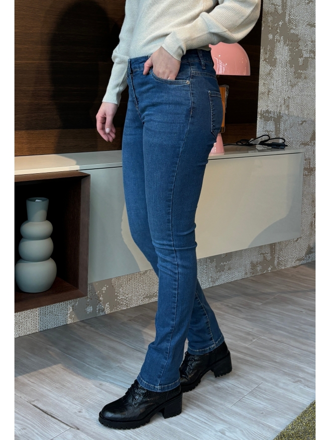 Spijkerbroek met een mooie donkerblauwe winterse wassing. Deze jeans is een 5-pocket slim fit model met een fijne dosis stretch! Tijdloze modieuze broek.