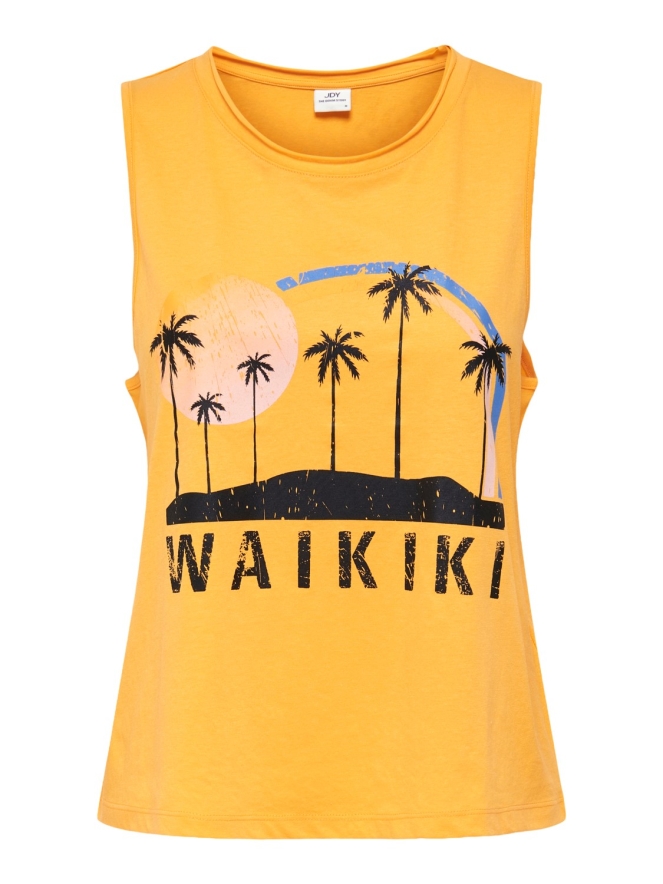 Top voor de dames met brede band en afbeelding voorop van Jacqueline de Yong.Kwaliteit: 65% polyester, 35% katoen.