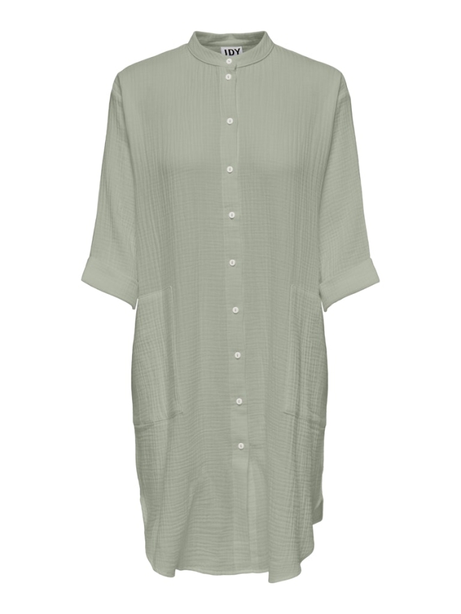 Deze blouse van JDY heeft een halve mouw en is een oversized model en valt net boven de knie. De blouse heeft twee grote steekzakken en loopt rond aan de onderkant. De mouwen zijn omgeslagen. Het materiaal is 100% katoen waarvan 20% gerecycled katoen.