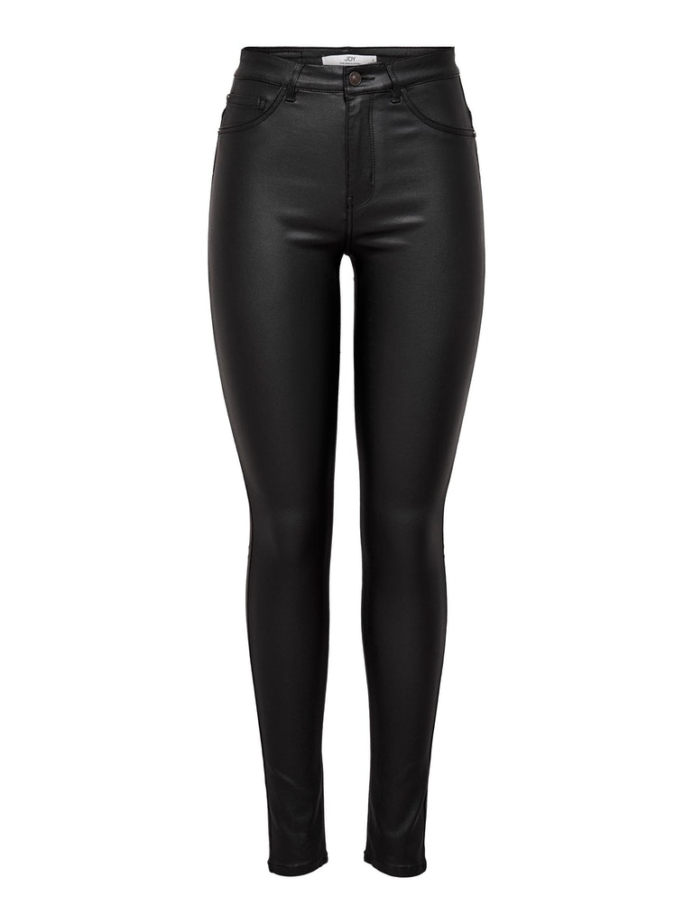 Deze broek heeft een coated look en feel. De broek heeft een hoge taille en een skinny fit.