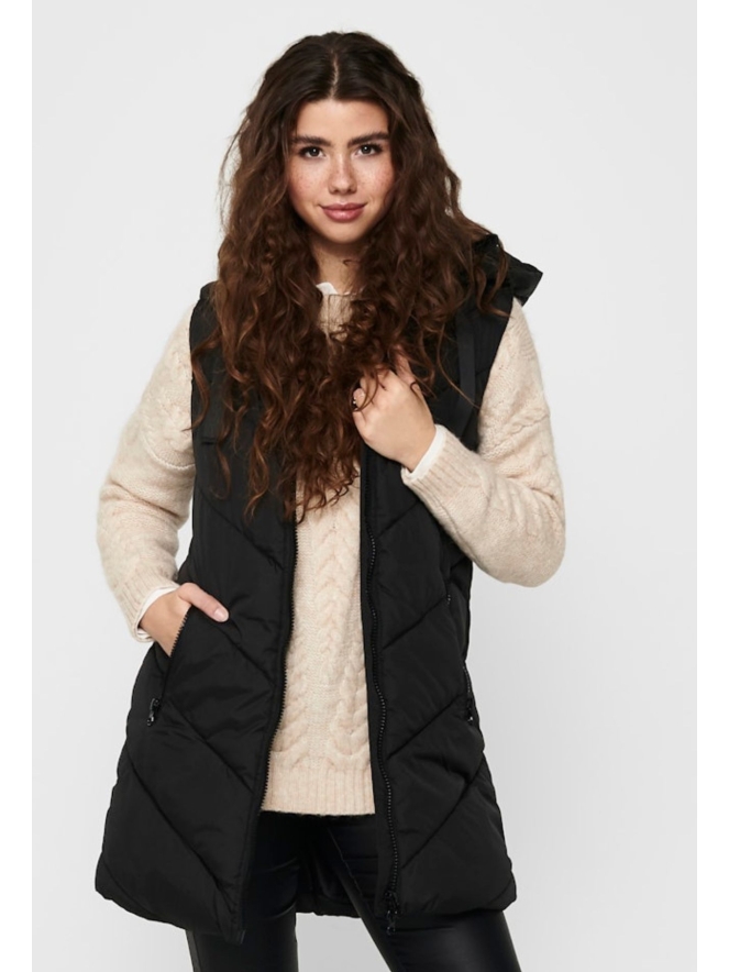 Je wilt nooit meer anders! Deze heerlijke puffer bodywarmer is een lang model en heeft een vaste capuchon. Valt iets oversized op maat. Pluspunt is dat de rits ook open kan van onderen.