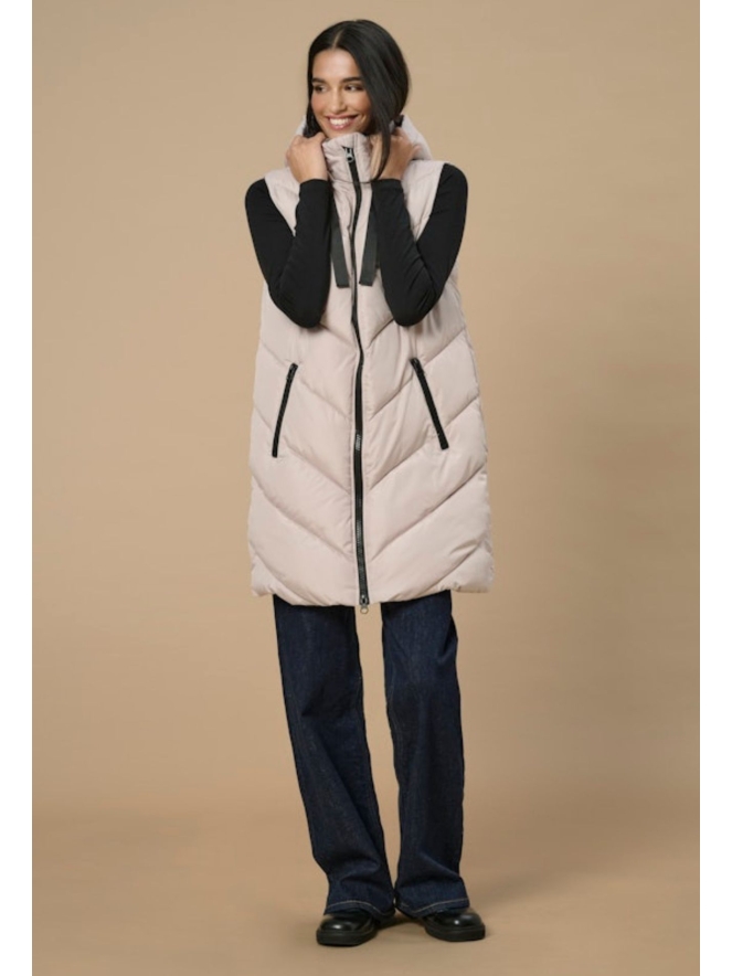 Je wilt nooit meer anders! Deze heerlijke puffer bodywarmer is een lang model en heeft een vaste capuchon. Valt iets oversized op maat. Pluspunt is dat de rits ook open kan van onderen.