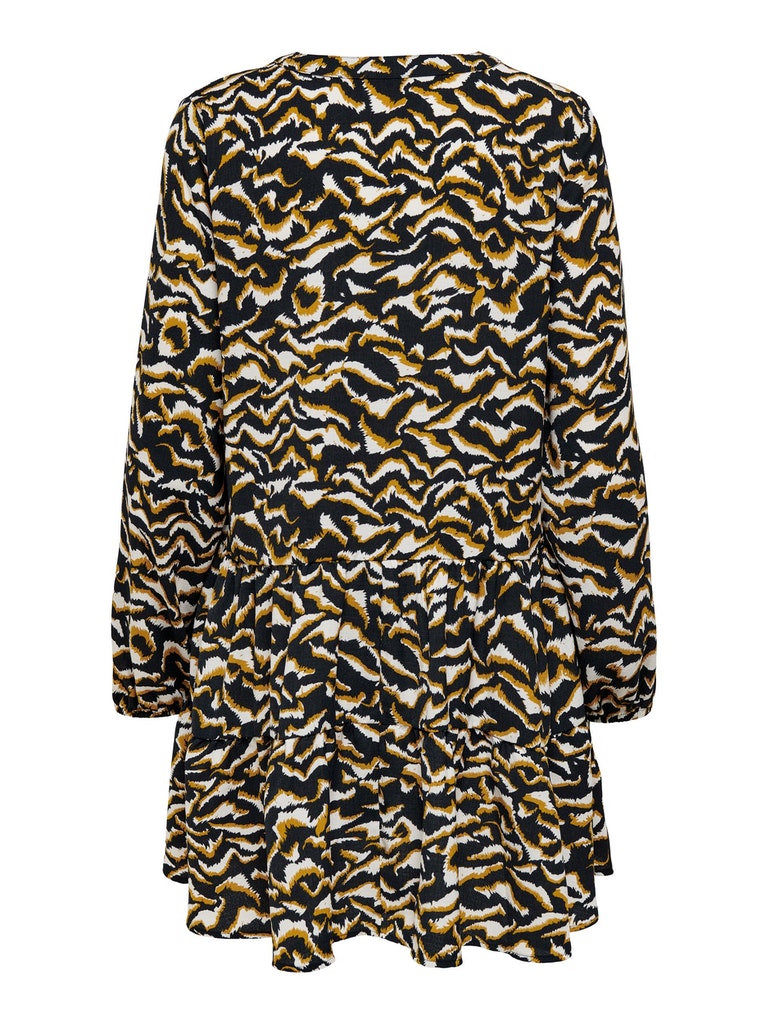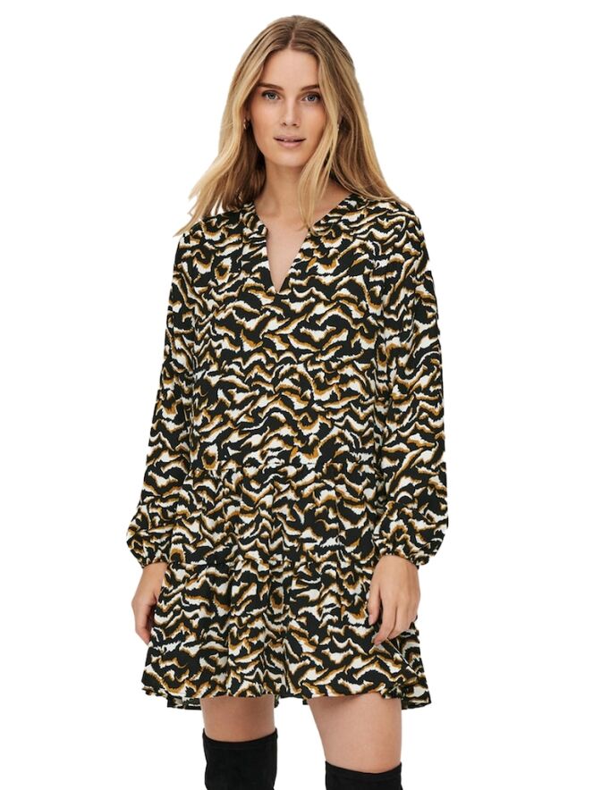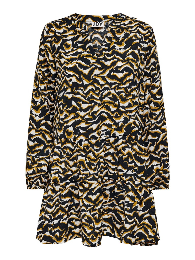 Blouse jurk van JDY. De jurk heeft een animal achtige print en een oversized model, de jurk heeft een v-hals 3 lagen. Materiaal: 100% polyester. Wassen op 30 graden, niet bleken, niet in de droger, niet chemisch reinigen, koud strijken.