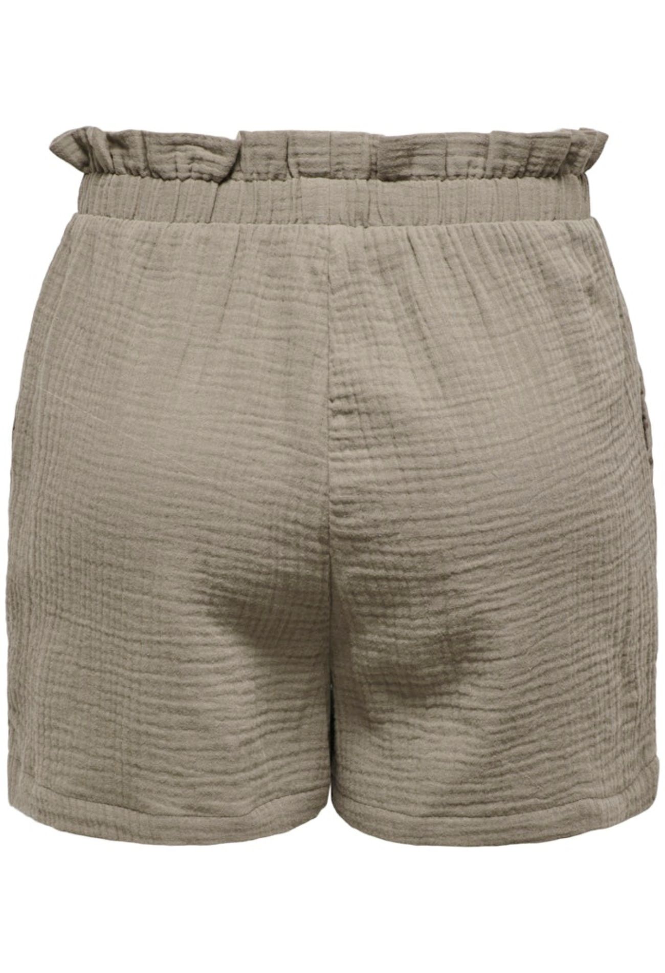 Warm weer? Dan is dit je nieuwe favoriet! Deze korte broeken van gerecycled katoen dragen heerlijk. Heeft een linnen look, steekzakjes en zit comfortabel door de brede elastische tailleband. Leuk te combineren met een T-shirtje, slippers of sneakers!