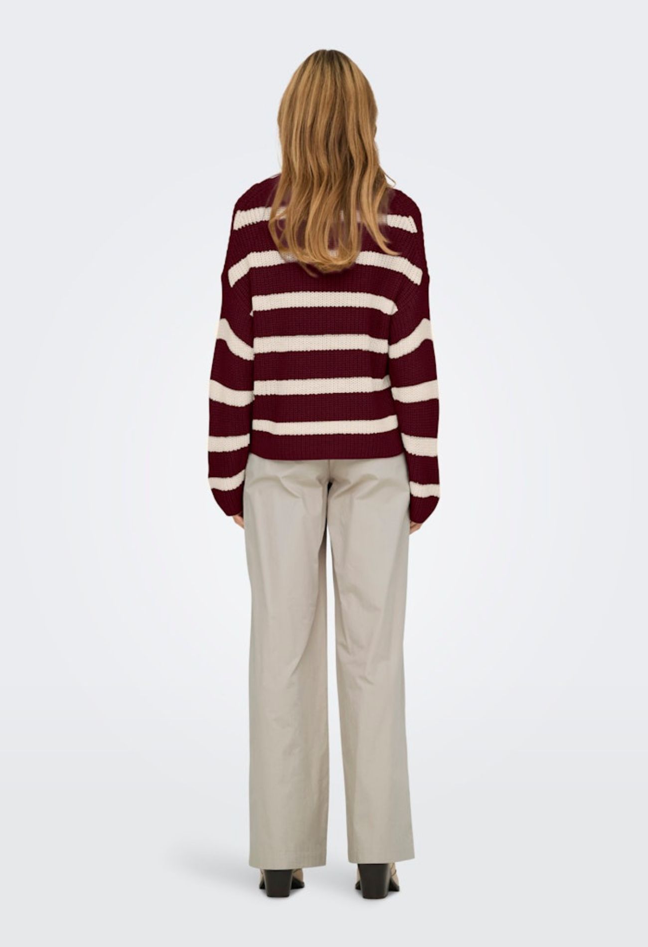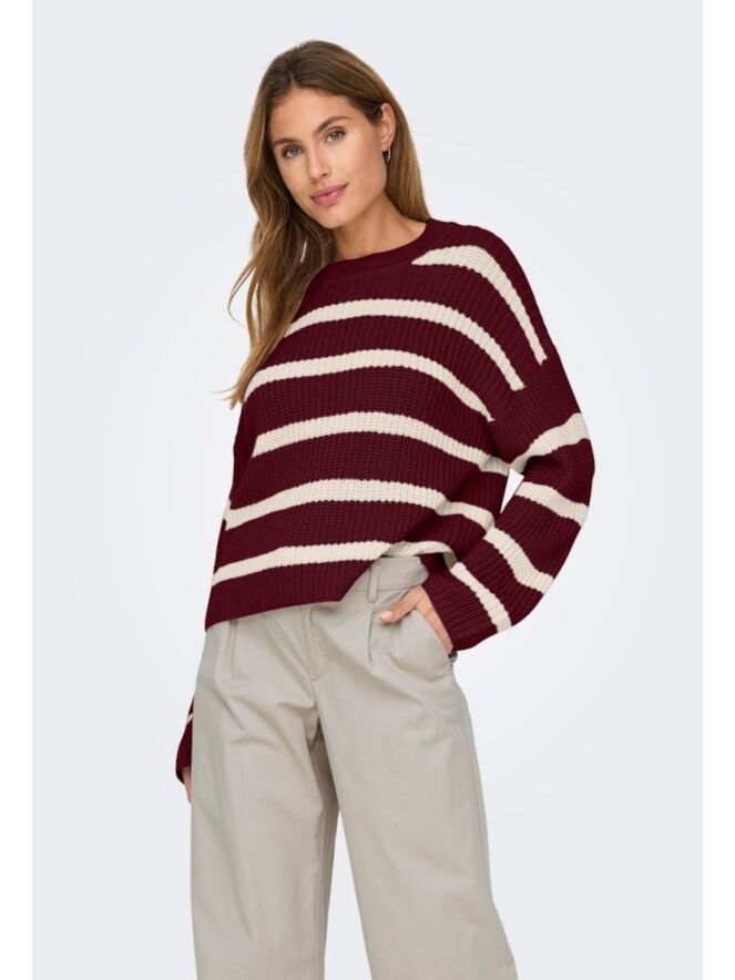 Trendy trui met een ronde hals en lange mouwen. De trui heeft een verticaal grof gestreept design, wat zorgt voor een moderne en opvallende uitstraling. Een veelzijdig kledingstuk dat gemakkelijk te combineren is. Let op dit is een royaal ruimvallend model!