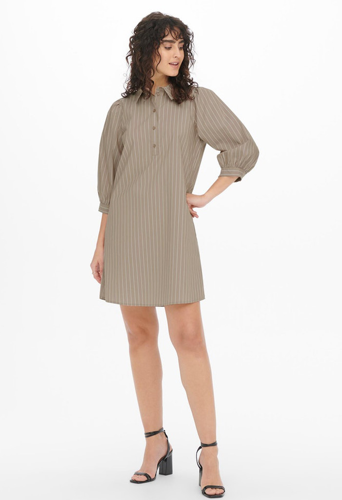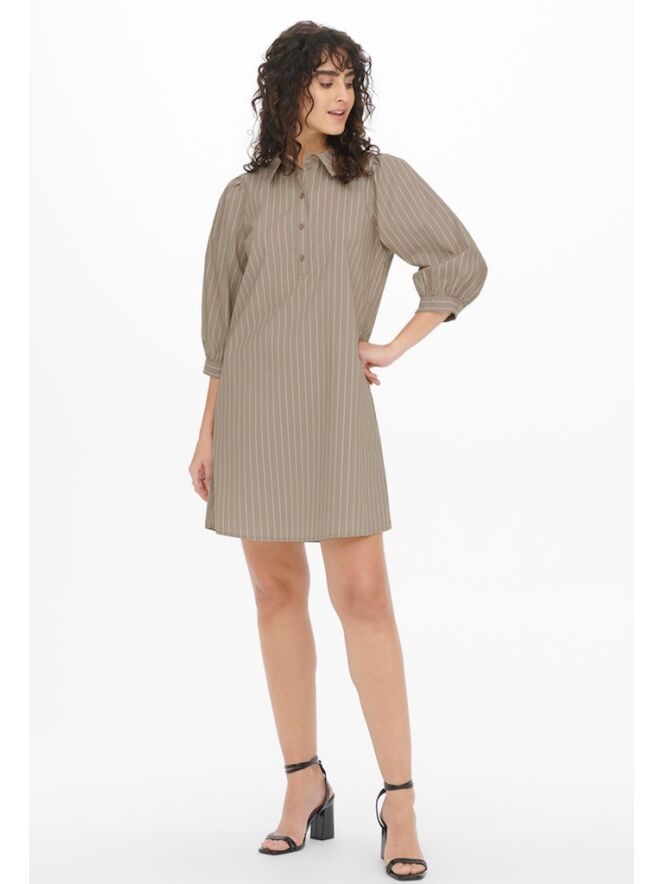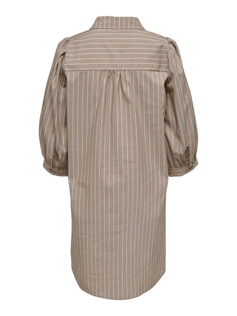 Blouse jurk van JDY. De jurk heeft een blouse model en is gestreept. De jurk heeft een pofmouw. Valt oversized op maat. Materiaal: 72% katoen, 24% polyester, 4% elasthan. Wassen op 30 graden, niet bleken, niet in de droger, kan gestreken worden.