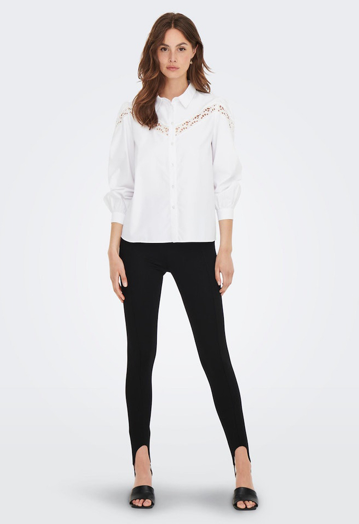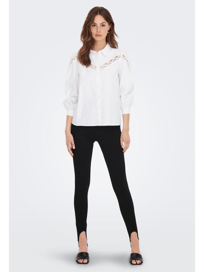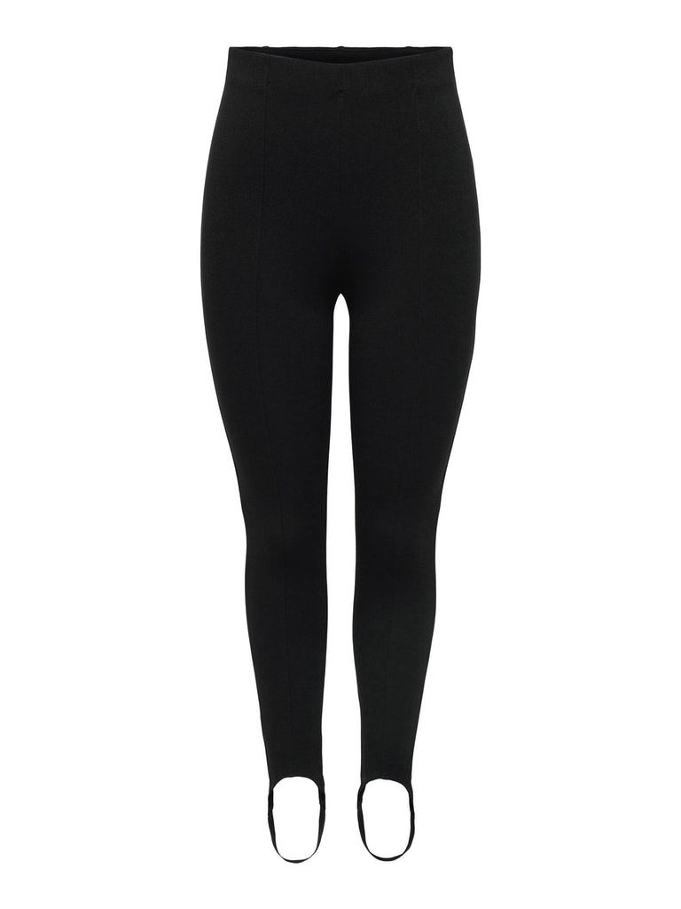 Deze legging heeft elastieken bandjes die om de voet heen kunnen. De legging heeft een deelnaad.