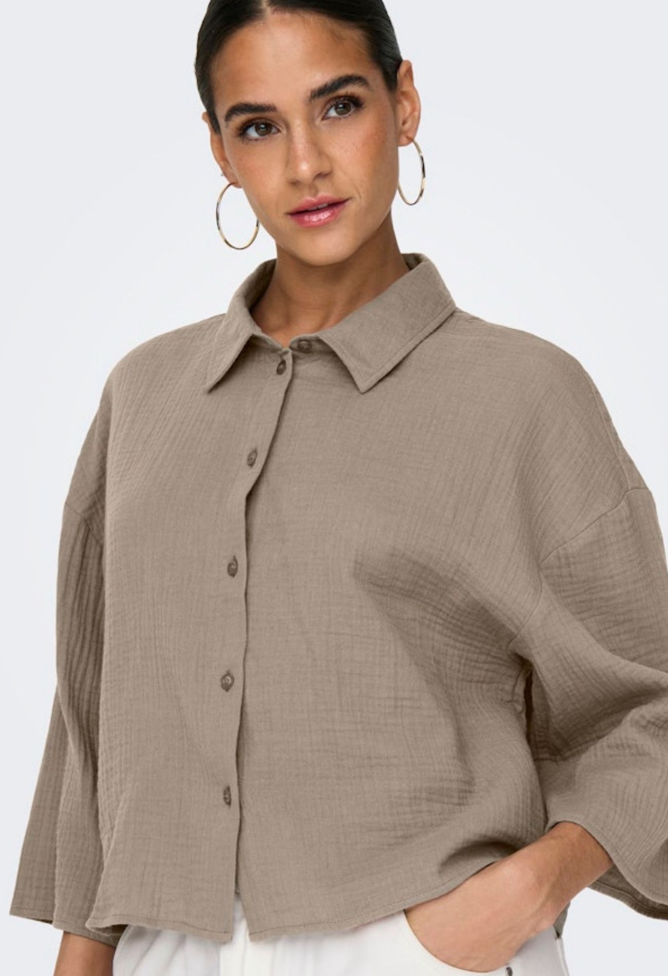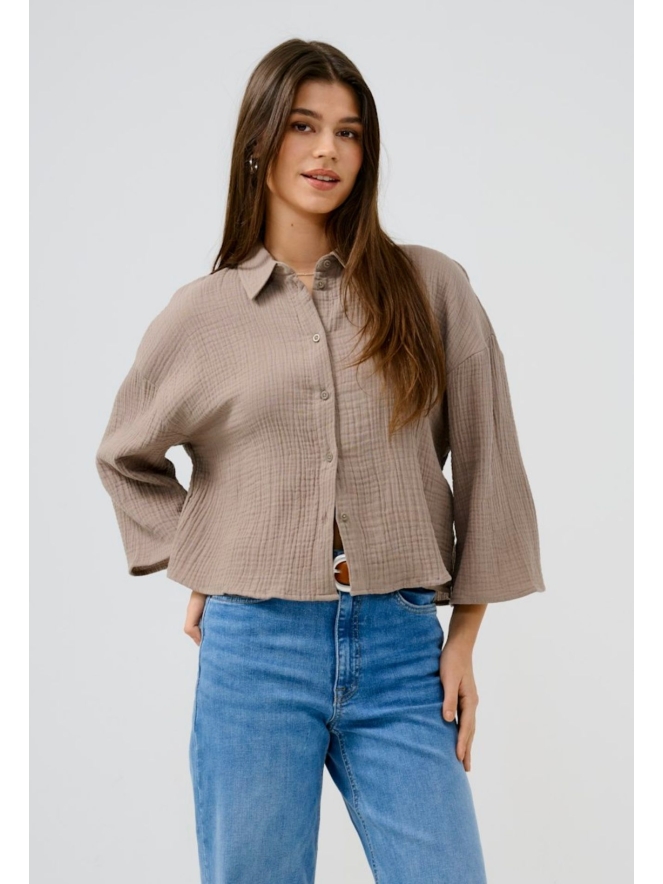 Deze zomerse mousseline katoenen blouse draagt licht, luchtig en is ademend! Het model is wat wijder en cropped dus iets korter. Met een driekwart mouw. Stijlvol te dragen op een mooie jeans maar ook zeker op een pantalon van dezelfde mousseline stof.
