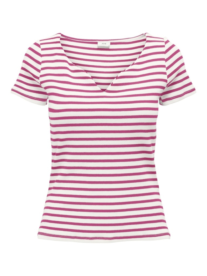 Deze top met korte mouwen heeft een sierlijke V hals, veel stretch en is een aansluitend model.