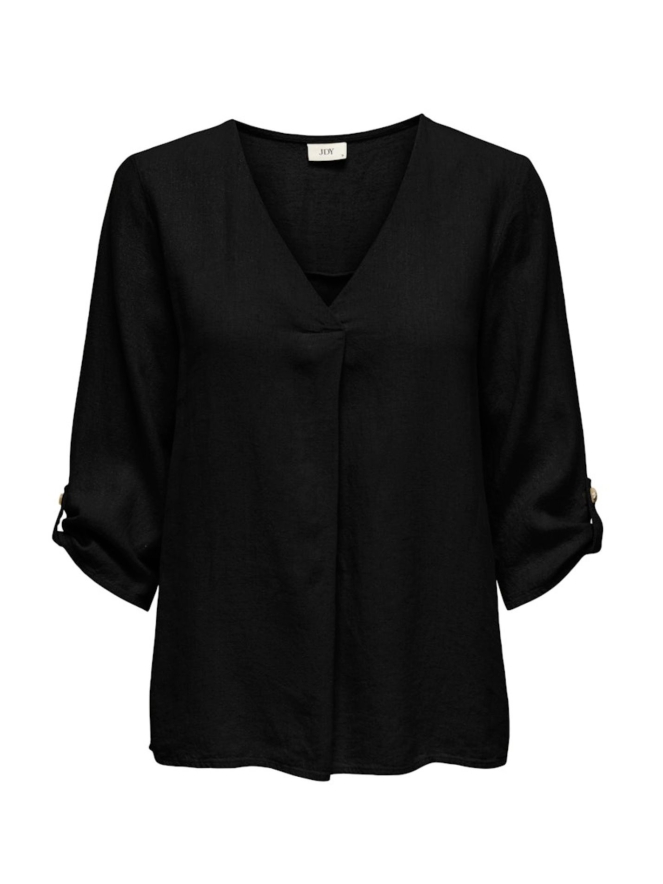 Deze top draagt comfortabel op warme dagen door de mix van linnen en viscose. Met driekwart mouwen en een V hals. Mooie linnen neutrale look, ze vallen royaal.
