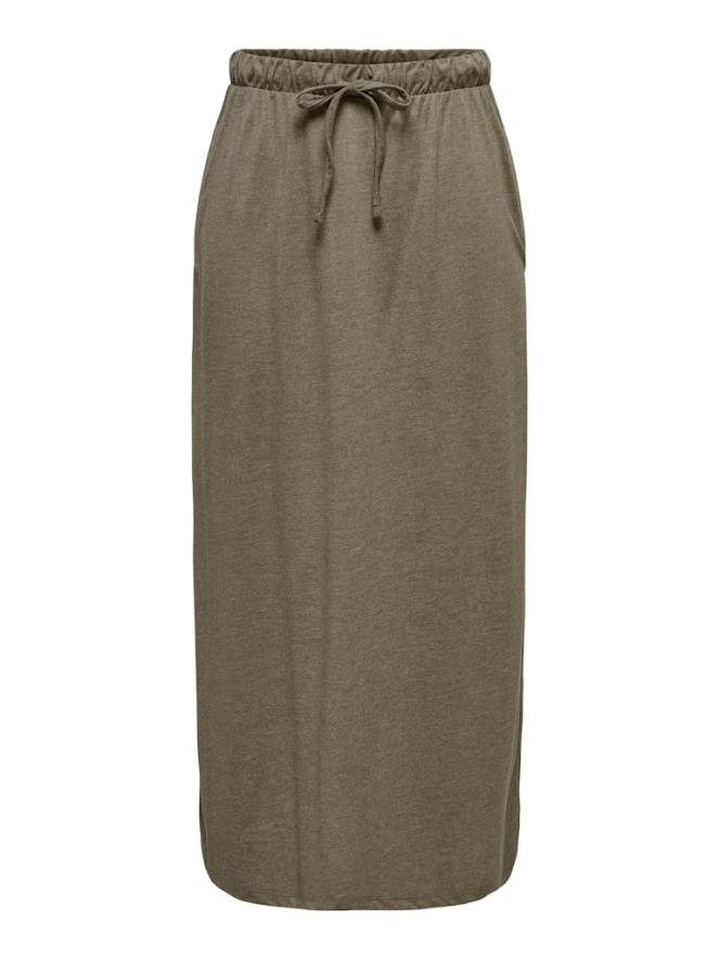 Fijne effen lange rok van dunne sweatstof. Deze rok heeft steekzakken dus dat draagt heerlijk nonchalant. Met een elastische taillband met koordje. Geen split, gewoon recht toe recht aan.