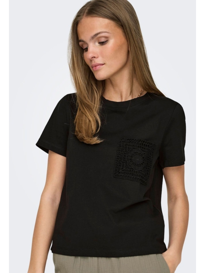 Dit T-shirt met crocket zakje is net even anders dan je gewend bent maar een hot item! Crocket is helemaal trendy deze zomer en zo op een effen item is een super leuke toegevoegde waarde. Met dit shirt kan je alle kanten op. Combineert goed op jeans maar ook op een leuke rok! Mix en match!!