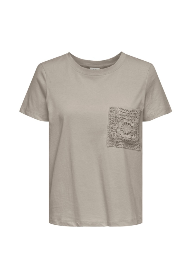 Dit T-shirt met crocket zakje is net even anders dan je gewend bent maar een hot item! Crocket is helemaal trendy deze zomer en zo op een effen item is een super leuke toegevoegde waarde. Met dit shirt kan je alle kanten op. Combineert goed op jeans maar ook op een leuke rok! Mix en match!!